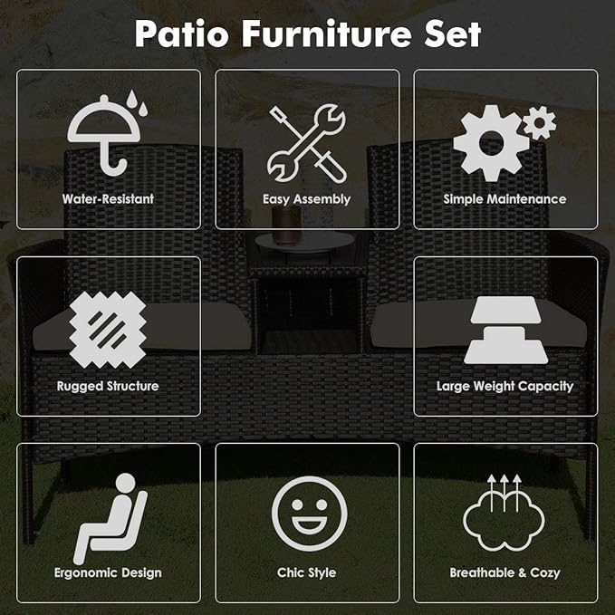 About This 【Cozy and Ergonomic Design】For your comfort, this wicker set comes with two thick cushions(pillow not included) that is...