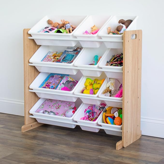 Humble Crew, Natural Wood/White Kids Toy Organizer with 12 Storage Bins