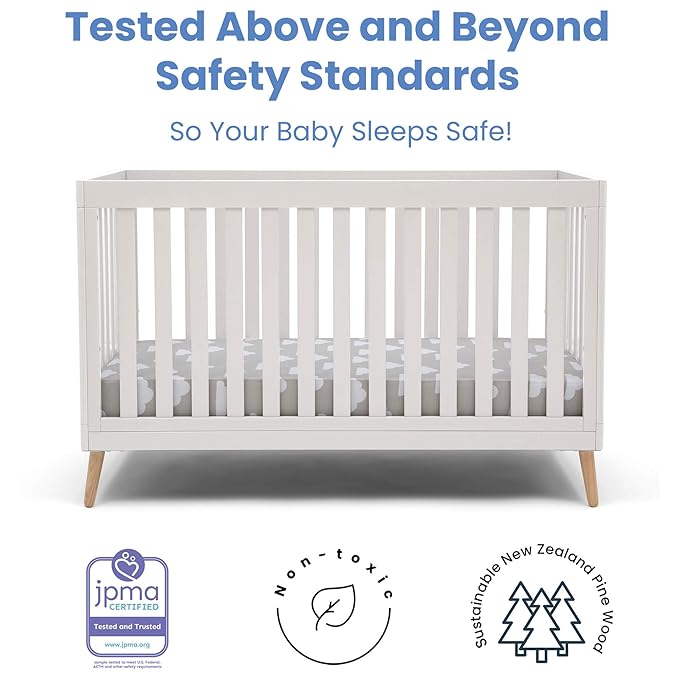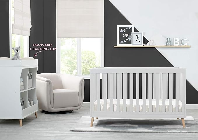 Delta Children Essex 4-in-1 Convertible Baby Crib, Bianca White with Natural Legs + Delta Children Twinkle Galaxy Dual Sided Recycled Fiber Core Crib and Toddler Mattress (Bundle)