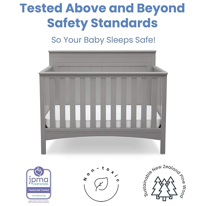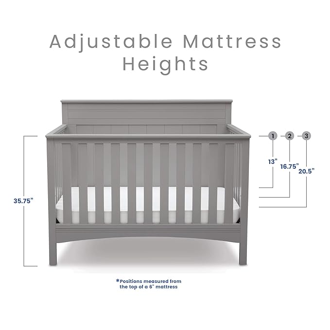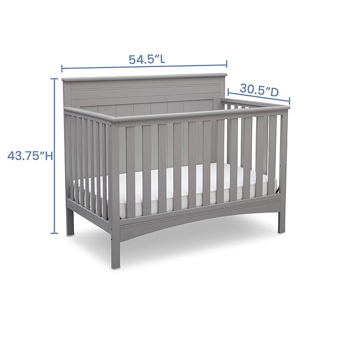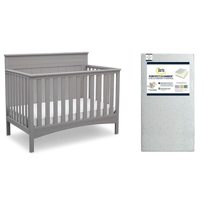 Delta Children Fancy 4-in-1 Crib, Grey + Serta Perfect Slumber Dual Sided Recycled Fiber Core Crib and Toddler Mattress (Bundle)