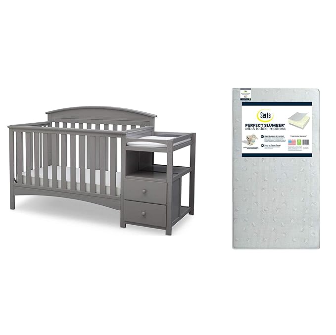 Delta Children Abby Convertible Crib 'N' Changer, Grey + Serta Perfect Slumber Dual Sided Recycled Fiber Core Crib and Toddler Mattress (Bundle)