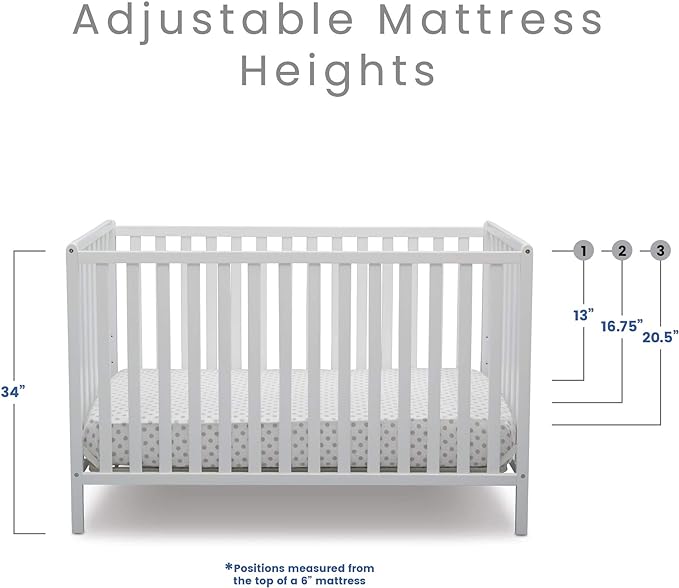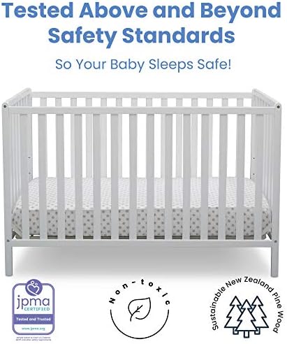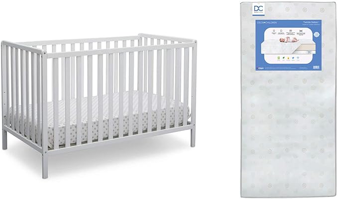 Delta Children Heartland 4-in-1 Convertible Crib, Bianca White + Delta Children Twinkle Galaxy Dual Sided Recycled Fiber Core Crib and Toddler Mattress (Bundle)
