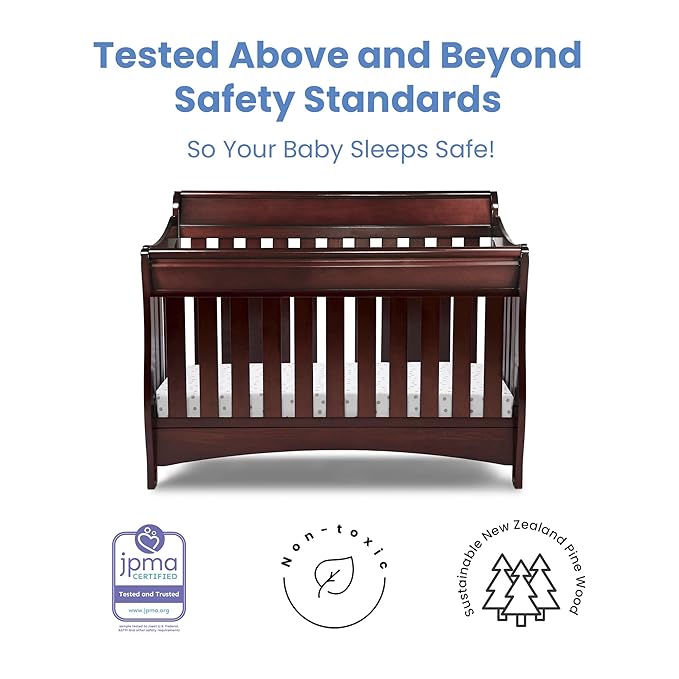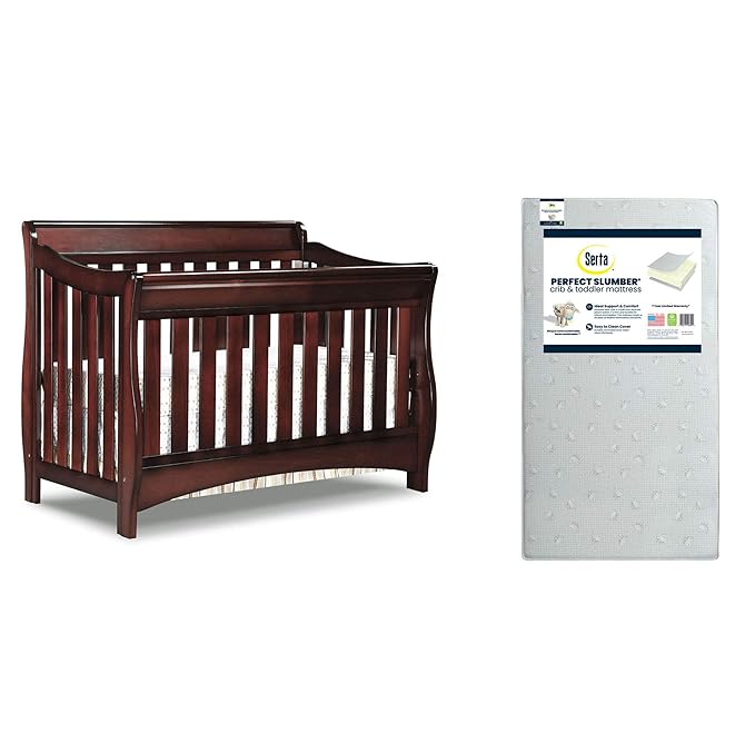 Delta Children Bentley S Series 4-in-1 Crib, Black Cherry Espresso + Serta Perfect Slumber Dual Sided Recycled Fiber Core Crib and Toddler Mattress (Bundle)