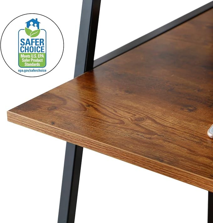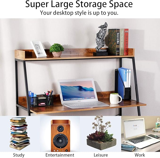 DESIGNA 48 Inch Ladder Desk with Storage Shelves, 2-Tier Home Office Students Study Writing PC Computer Gaming Table with Bookshelf Modern Workstation for Small Space Saving, Metal Frame, Rustic Brown