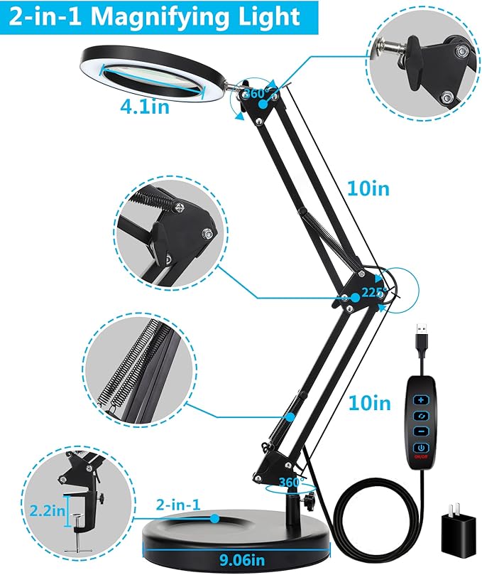 About This 8X HD Amplification: 8X endows desk magnifying glass with light a better amplification and presents a crystal-clear magnified...