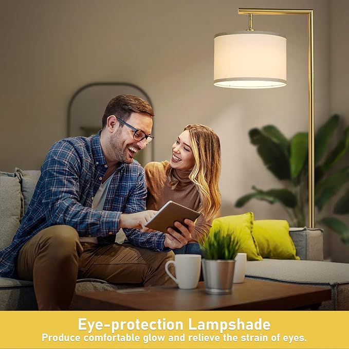 Boncoo Gold Floor Lamp, Montage Modern Standing Lamp with Flexible Lamp Head, Dimmable Floor Lamp for Living Room Tall Over Couch Reading Light for Bedroom, Office, 9W LED Bulb Included