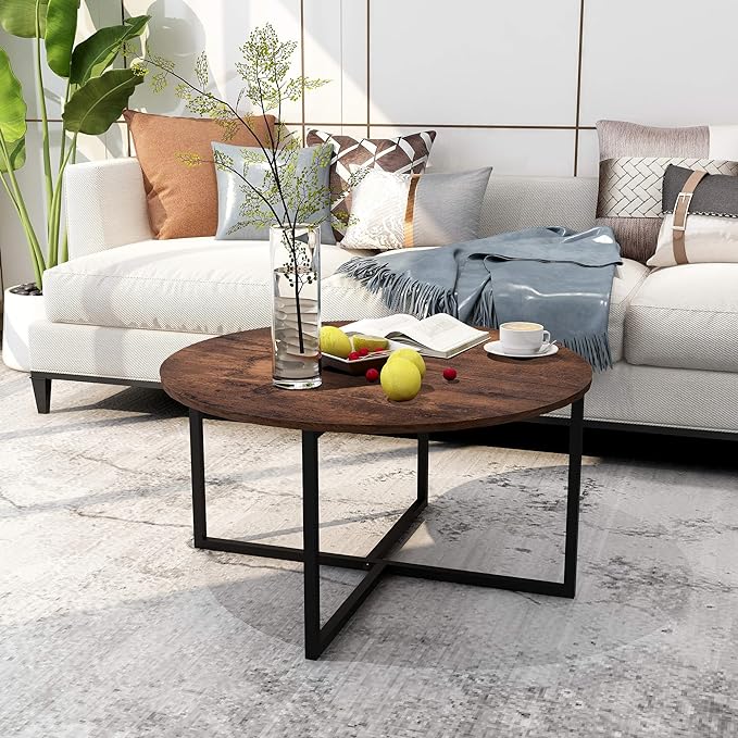 Round Coffee Table Kitchen Dining Table Modern Tea Table Office Conference Pedestal Desk Computer Study Desk Rustic Brown/Black