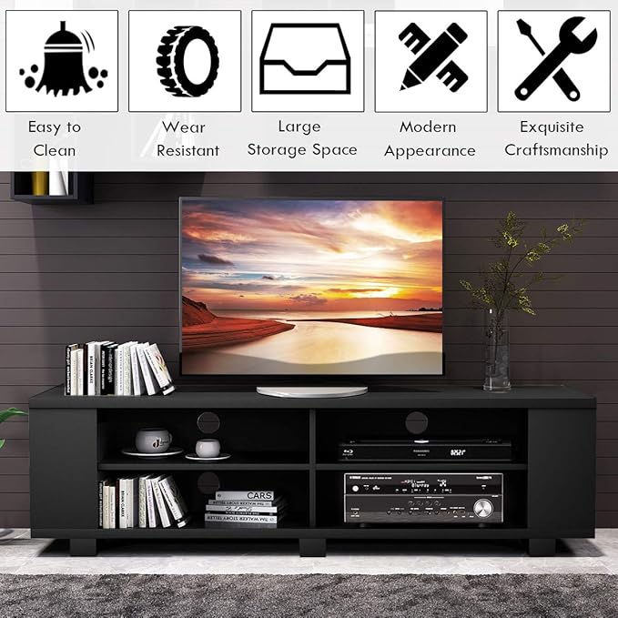 About This 【High-quality Materials & Stable Structure】: This TV cabinet uses MDF veneer and a scientifically designed structure to make...