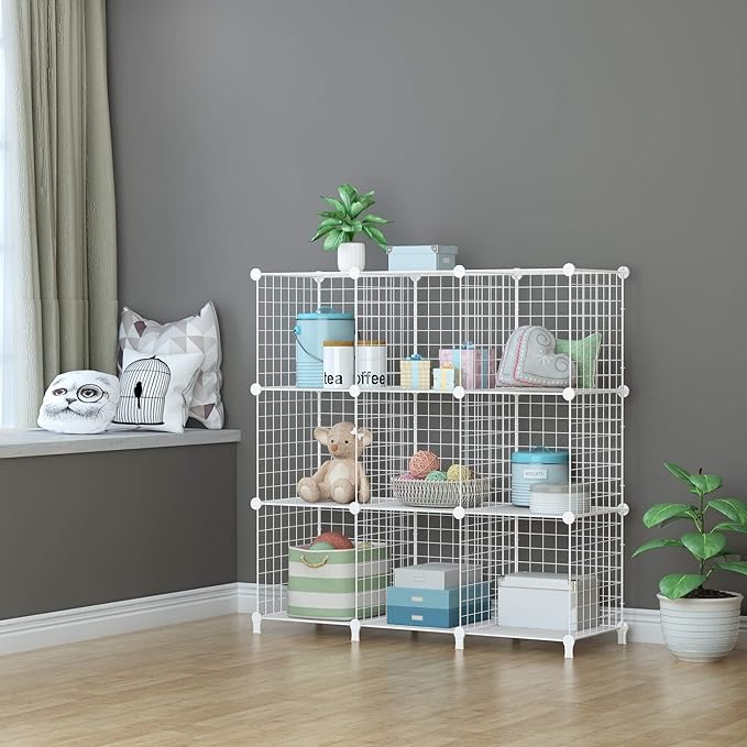 HOMIDEC Wire Cube Storage, Storage Shelves 9 Cube Bookshelf Bookcase Closet Organizer and Storage, Wire Storage Shelves Multi-Use DIY Storage Cube Shelf for Books, Toys, Clothes, Tools