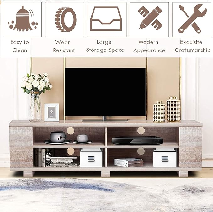 About This 【High-quality Materials & Stable Structure】: This TV cabinet uses MDF veneer and a scientifically designed structure to make...