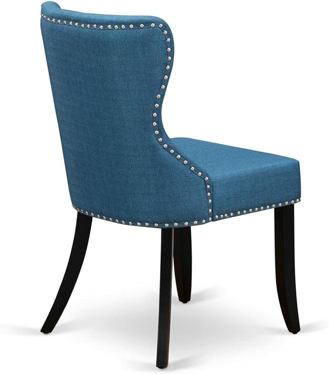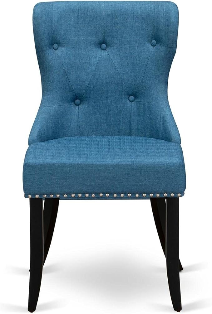 East West Furniture SIP1T21 Sion Parson Dining Room Button Tufted Nailhead Trim Blue Linen Fabric Upholstered Chairs, Set of 2, Black