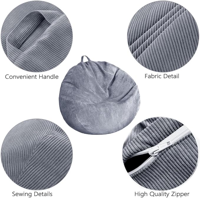 Bean Bag Chair Cover (No Filler) Stuffed Animal Storage Bean Bag Cover Pets Dogs/Cats Lazy Beds. Washable Ultra Soft Corduroy Stuffed for Organizing Plush Toys or Textile, Sack Bean Bag