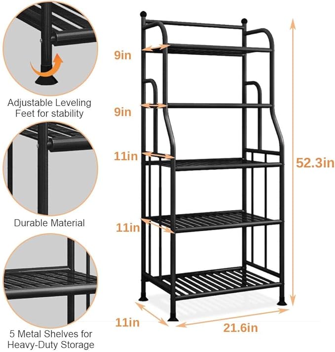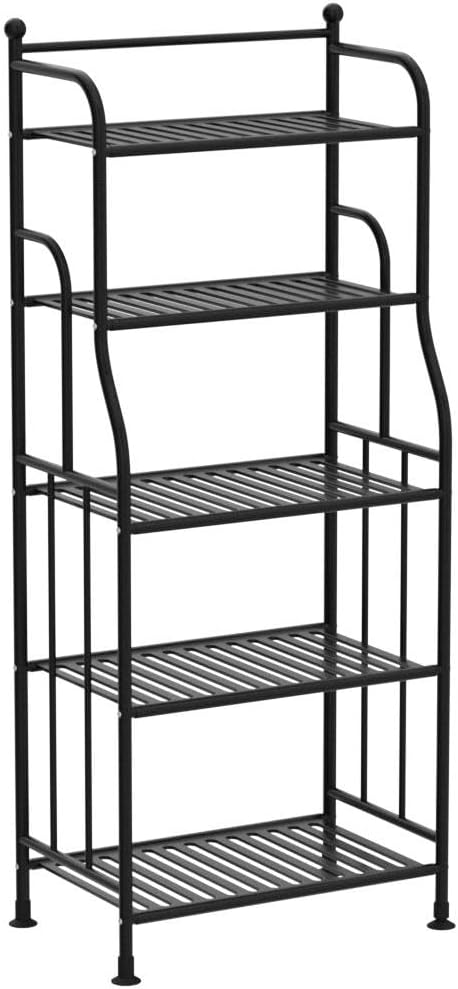 Shelving Unit Bakers Rack Metal Storage Shelves Laundry Shelf Organizer Standing Shelf Units for Laundry Kitchen Bathroom Pantry Closet Indoor and Outdoor (5 Tier, Black)