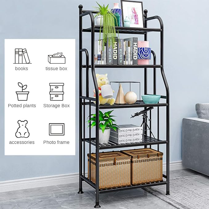 About This 【Sturdy and High Quality】The 5-tier shelving unit is made of sturdy metal construction and black-coated finish, has excellent...