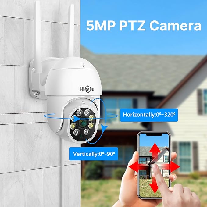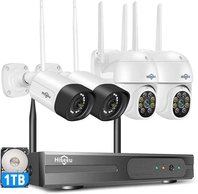 Hiseeu Security Cameras Wireless Outdoor System 5MP PTZ&Bullet Cameras IP66 Waterproof -Night Vision Motion Alert with 1TB Storage WiFi Security Camera No Monthly Fees
