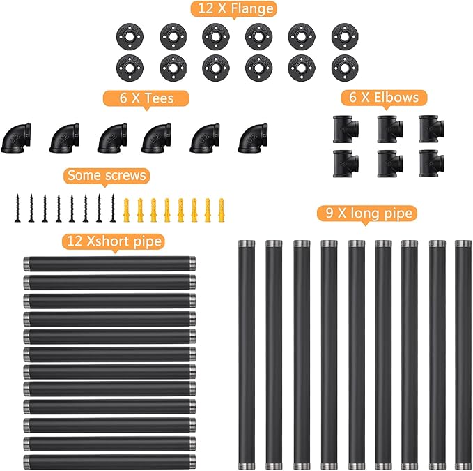 About This MATERIAL: Industrial pipe shelf 4 tier, iron shelves hardware only, planks board is not included. SIZE: The whole...