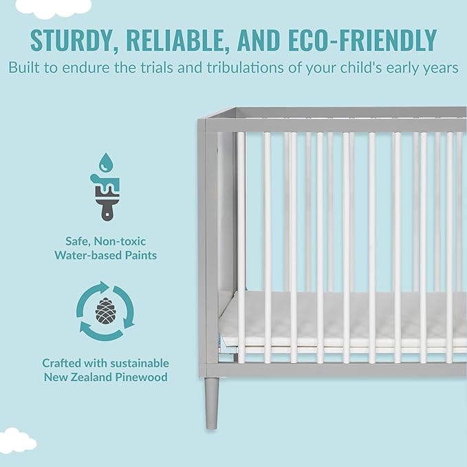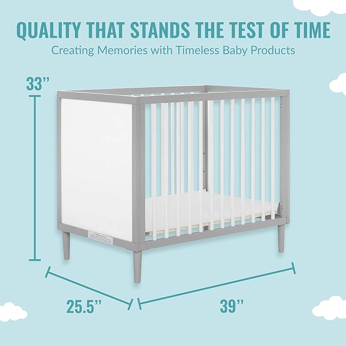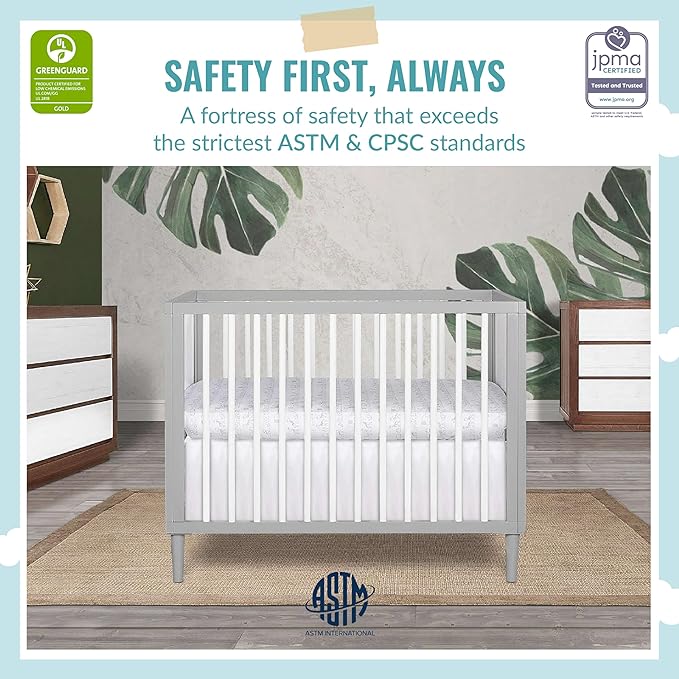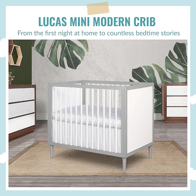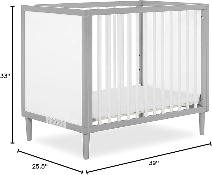 Lucas Mini Modern Crib with Rounded Spindles, 39"L x 25.5"W x 33"H