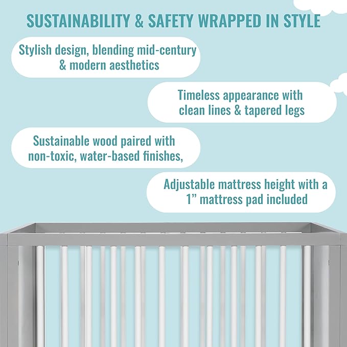 About This Wood Imported STYLISH DESIGN: The Lucas Mini Crib fits easily into any nursery decor thanks to its mid-century...