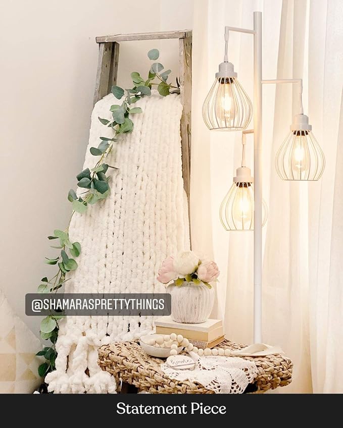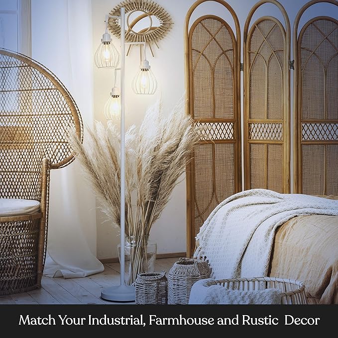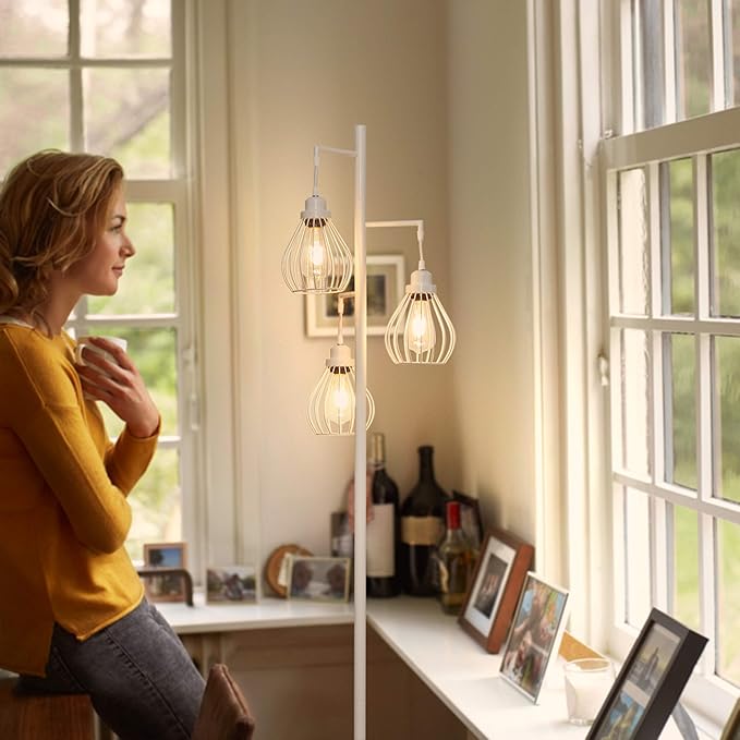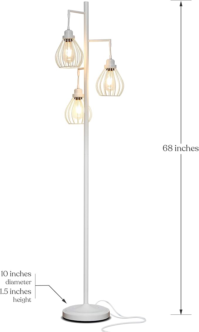 Brightech Teardrop LED Floor Lamp – Tree Standing Lamp with 3 Elegant Cage Heads & Edison Bulbs – Standing Lamp for Living Rooms & Offices – Tall Standing Lamp Ideal for Bedroom Reading – Alpine White