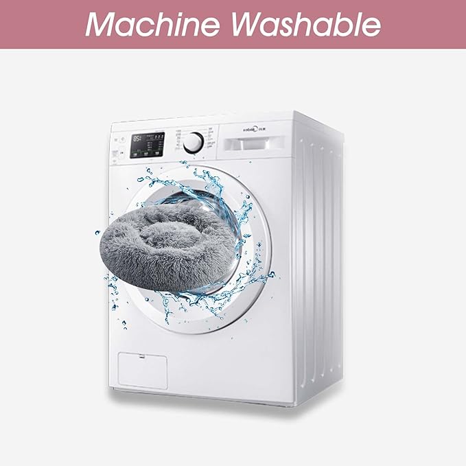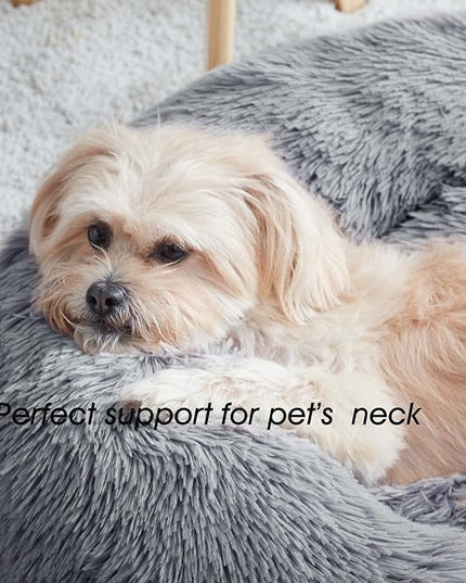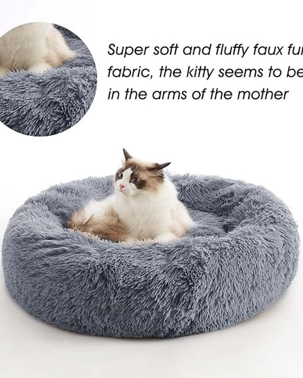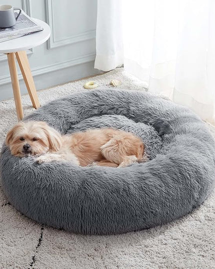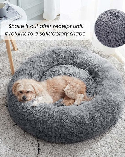 WESTERN HOME WH Calming Dog & Cat Bed, Anti-Anxiety Donut Cuddler Warming Cozy Soft Round Bed, Fluffy Faux Fur Plush Cushion Bed for Small Medium Dogs and Cats (20"/24"/27"/30")