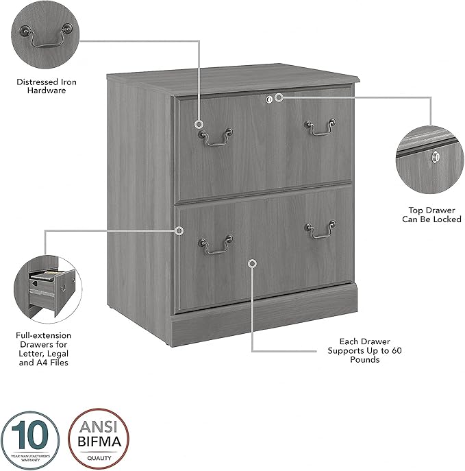 About This Sold as 1 Each. Two-drawer lateral file cabinet presents a practical storage solution with timeless traditional style. Laminate...