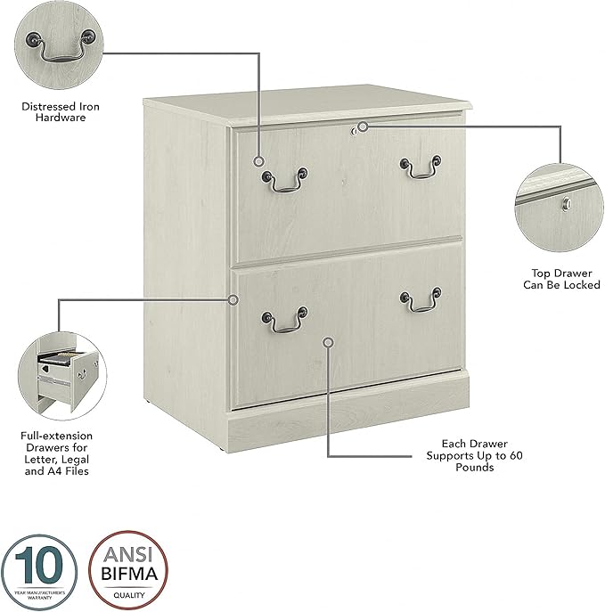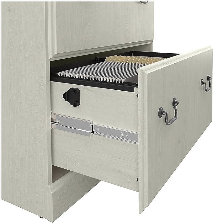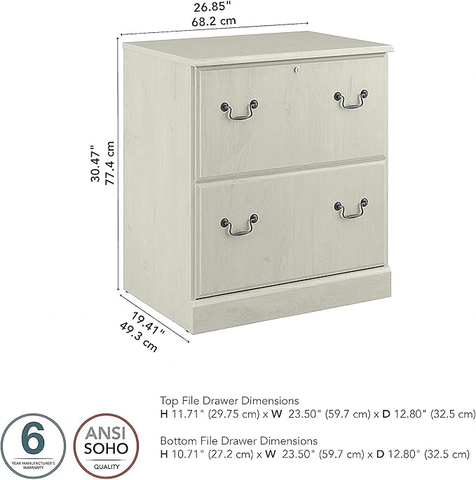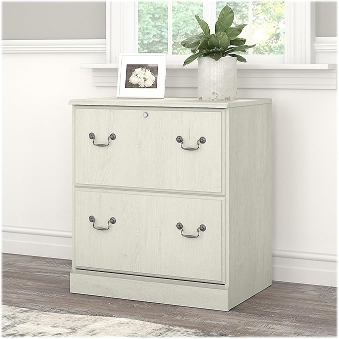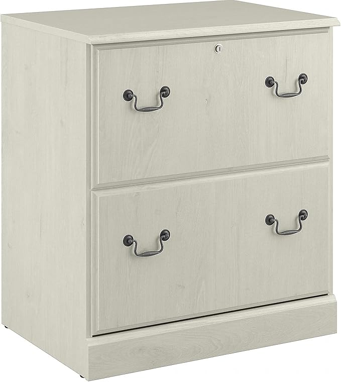 Bush Furniture Saratoga 2 Drawer Lateral File Cabinet in Harvest Cherry, Document Storage Chest for Home Office, Linen White Oak