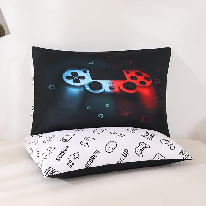 Boys Gamepad Comforter Set Full,Play Gamer Bedding Set Kid Young Man Video Games Down Comforter for Teen Child Game Room Decor Black Classic Retro Gaming Quilt Duvet Set with Controller Button