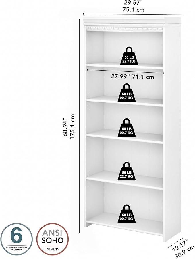 About This Engineered Wood Tall 5 Shelf Bookcase works well in a home office, living room or common area Three...