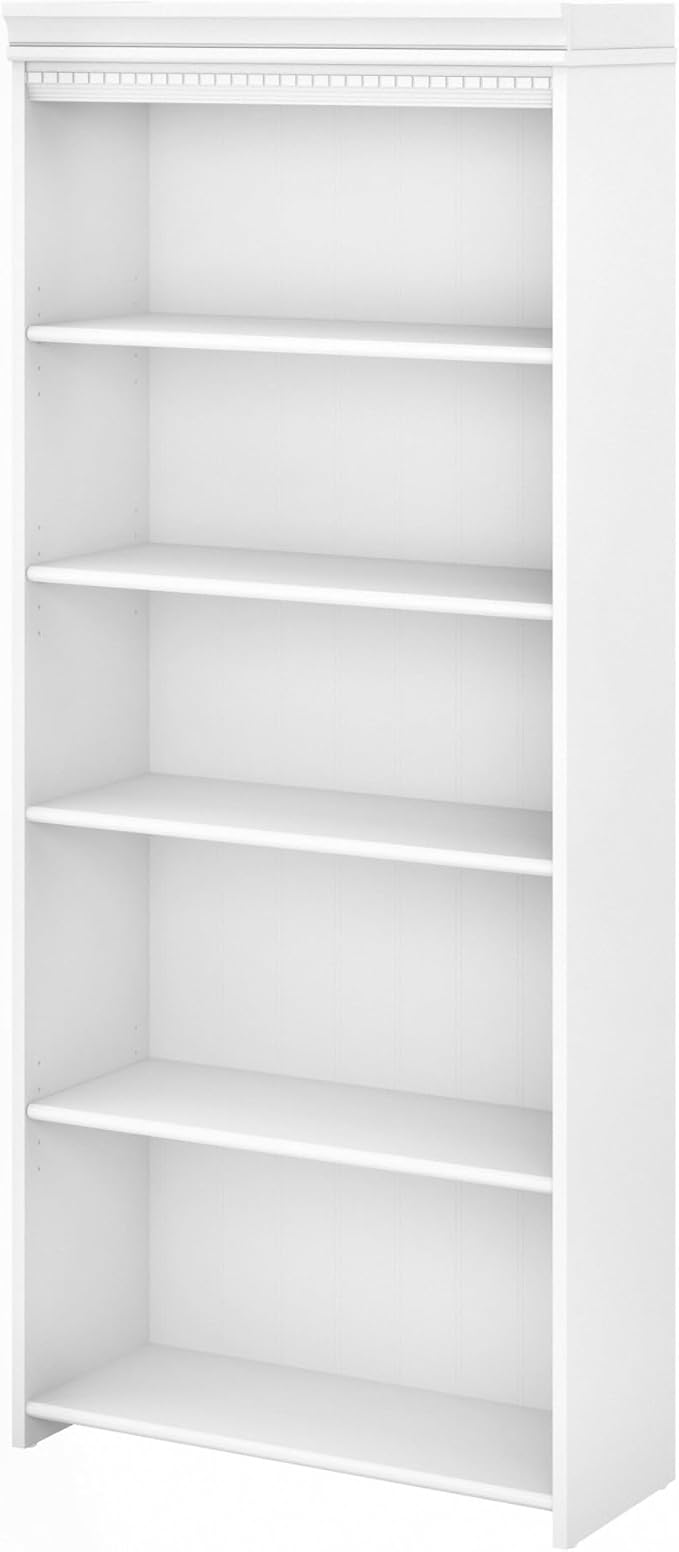 Bush Furniture Fairview Tall 5 Shelf Bookcase in Pure White and Shiplap Gray