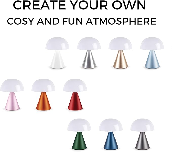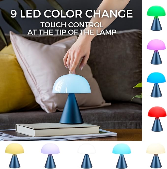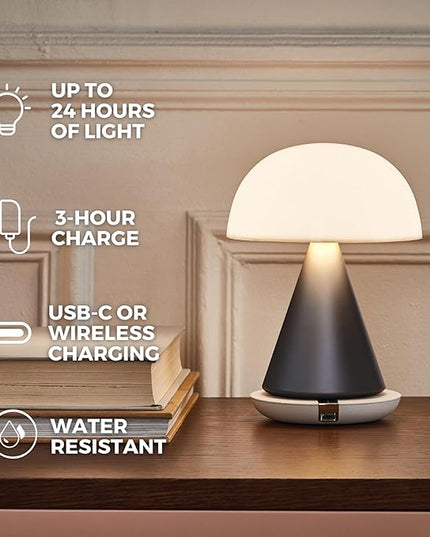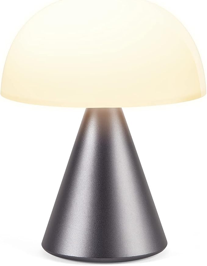Lexon Mina L Mushroom Lamp - 9 LED Color Table Lamp for Bedrooms, Living Room & Office - Cordless, Rechargeable with 24h Light & Dimmer, Aluminum, Large - Gun Metal