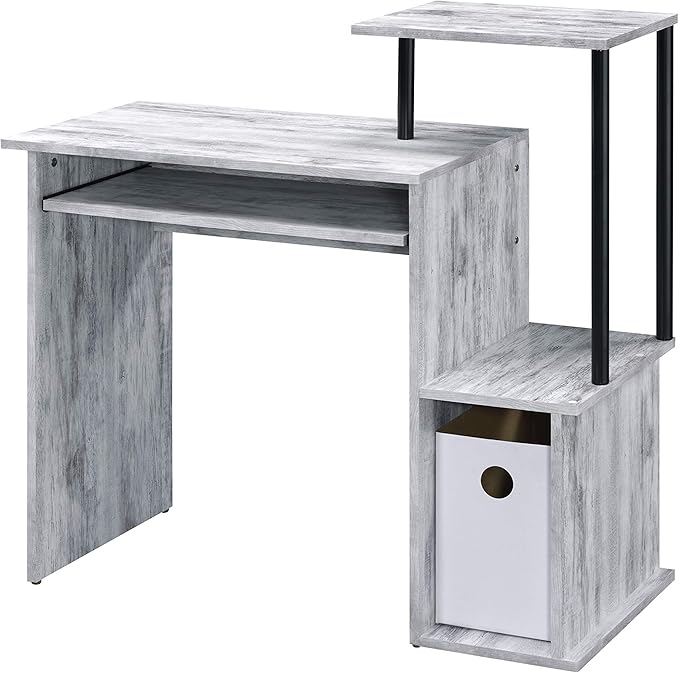 Acme Lyphre Wooden Top Computer Desk in Antique White and Black