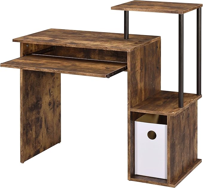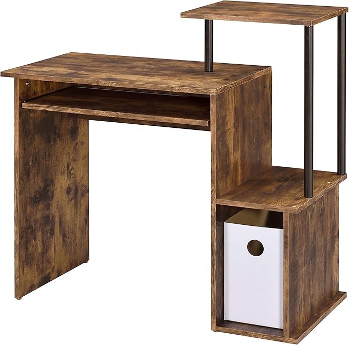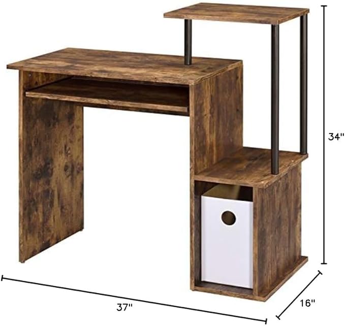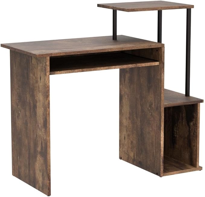 About This Rectangular table top Number of open storage compartment: 2 Keyboard tray included Shelf and storage compartment attached Floor...