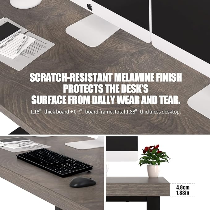 TOPSKY 59" Big Large Computer Office Desk 1.88" Thickness Desktop (Espresso Gray)