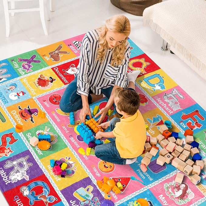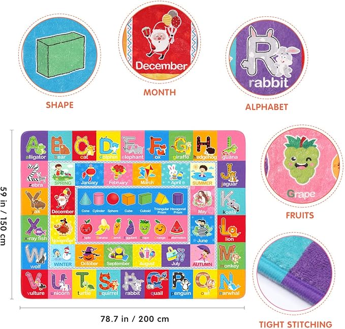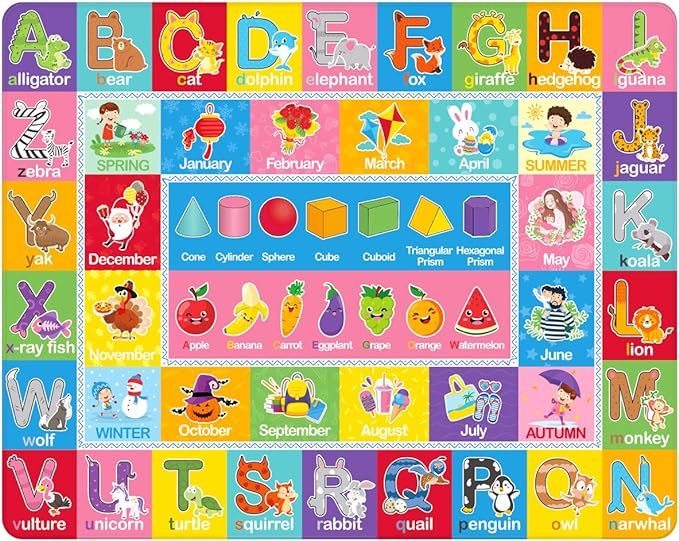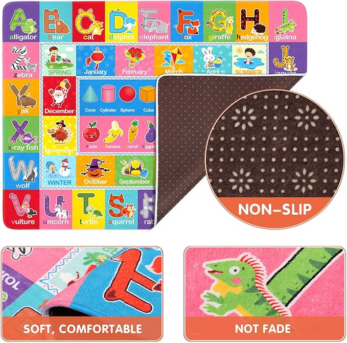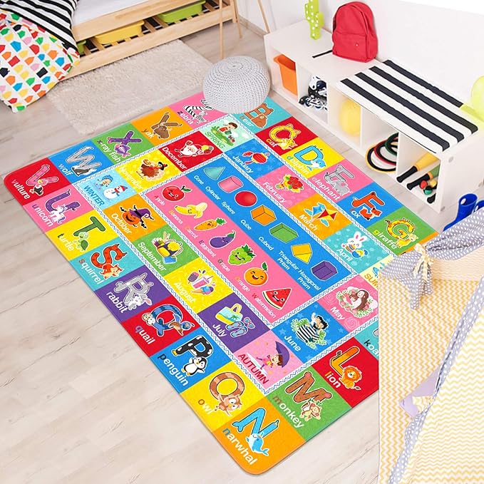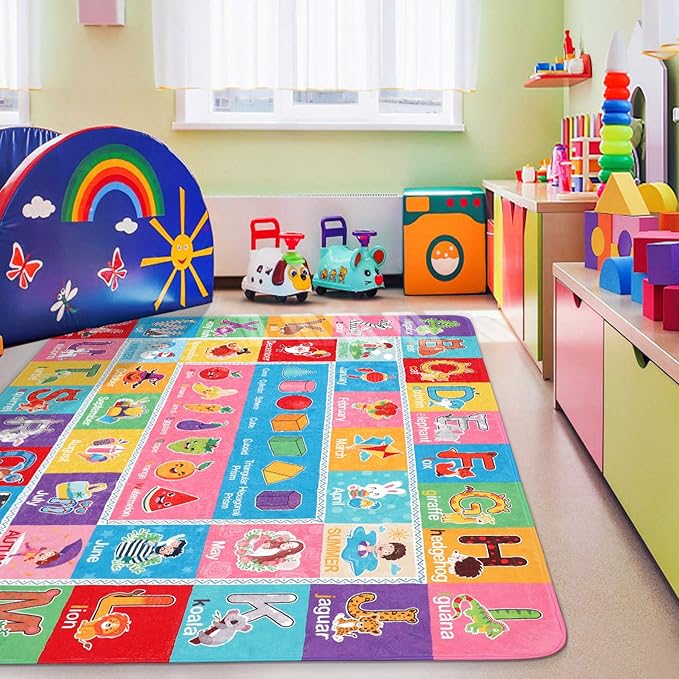 IMIKEYA Kids Play Rug Mat Playmat with Colorful Pattern, Playtime Collection ABC Alphabet, Seasons, Months, Fruit and Shapes Educational Area Rug for Kids Playroom Bedrooms, 78.7 x 59 Inch