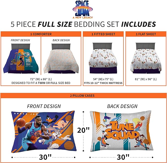 Franco Kids Bedding Super Soft Comforter and Sheet Set, 5 Piece Full Size, Space Jam 2 A New Legacy
