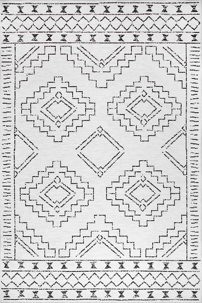 nuLOOM Noa Machine Washable Tribal Moroccan Ultra Thin Area Rug, 5x8, Ivory