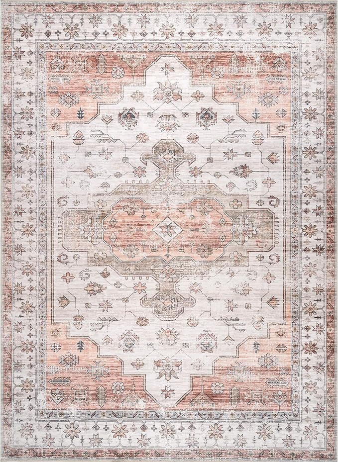 nuLOOM 5x8 Machine Washable Rain Haven Vintage Medallion Area Rug, Beige, Traditional Faded Design, Non-Slip Backing, Stain Resistant, For Bedroom, Dining Room, Living Room, Kitchen