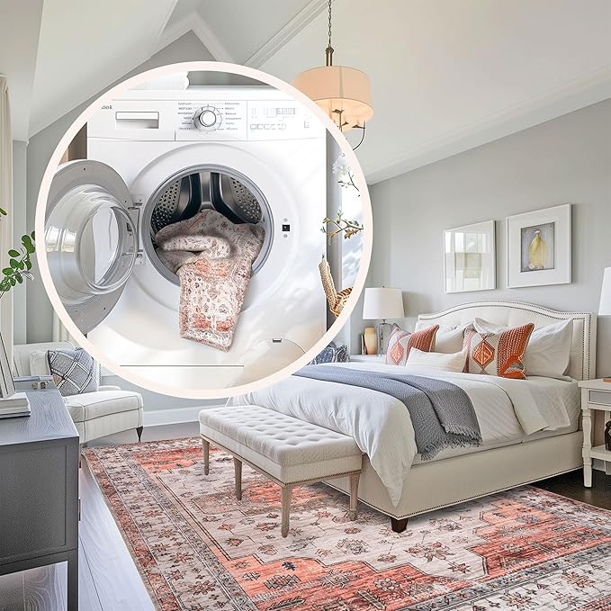About This Stain-Resistant Material: Our machine washable rug is crafted from 100% Polyester that is stain-resistant, lightweight, and easy to...