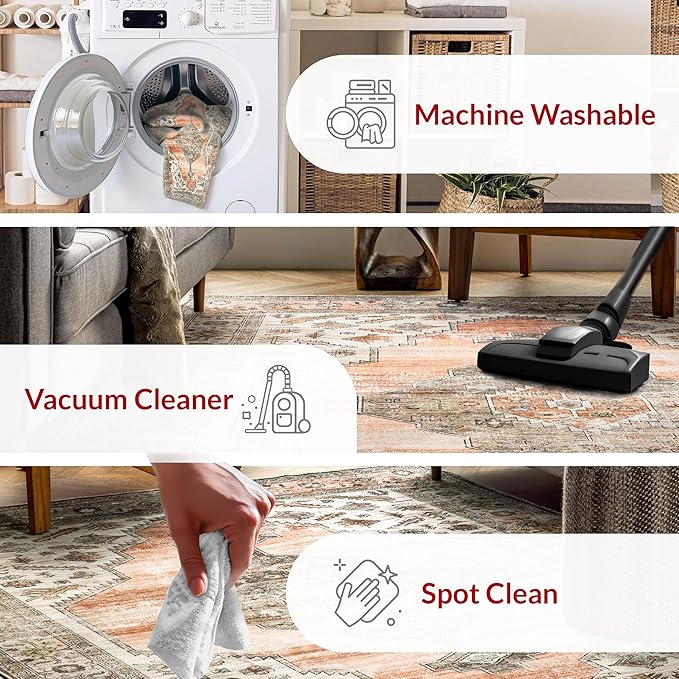 About This Stain-Resistant Material: Our machine washable rug is crafted from 100% Polyester that is stain-resistant, lightweight, and easy to...