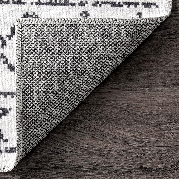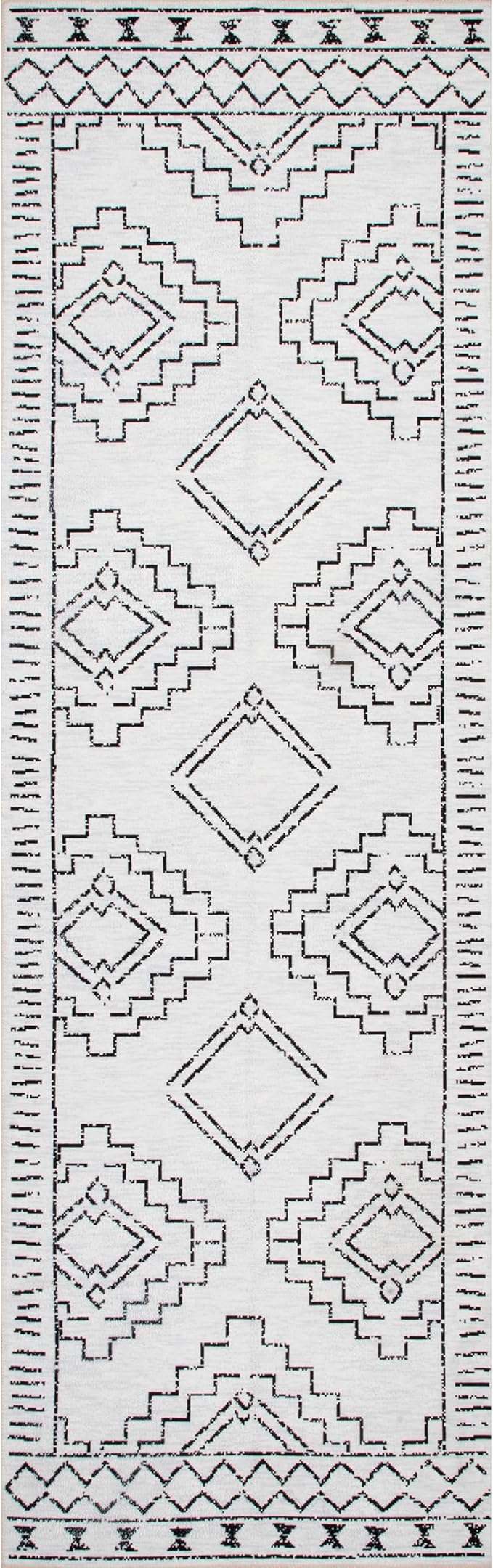 nuLOOM Noa Machine Washable Tribal Moroccan Runner Rug, 2' 6" x 8', Ivory, Rectangular, 0.1" Thick