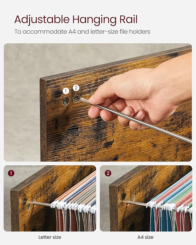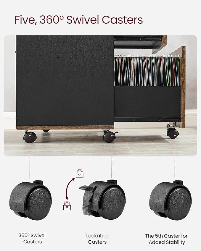 VASAGLE Lateral File Cabinet, Home Office Printer Stand, with 3 Drawers and Open Storage Shelves, for A4, Letter-Size Documents, Rustic Brown + Black