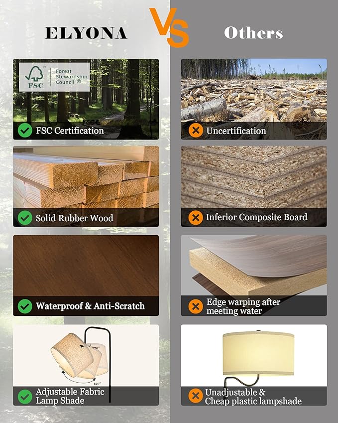 About This đăWhy can you trust ELYONA's Solid Wood?ăâ Unlike fiberboardâs wood grain paper surface and is glued with unknown woodchips...