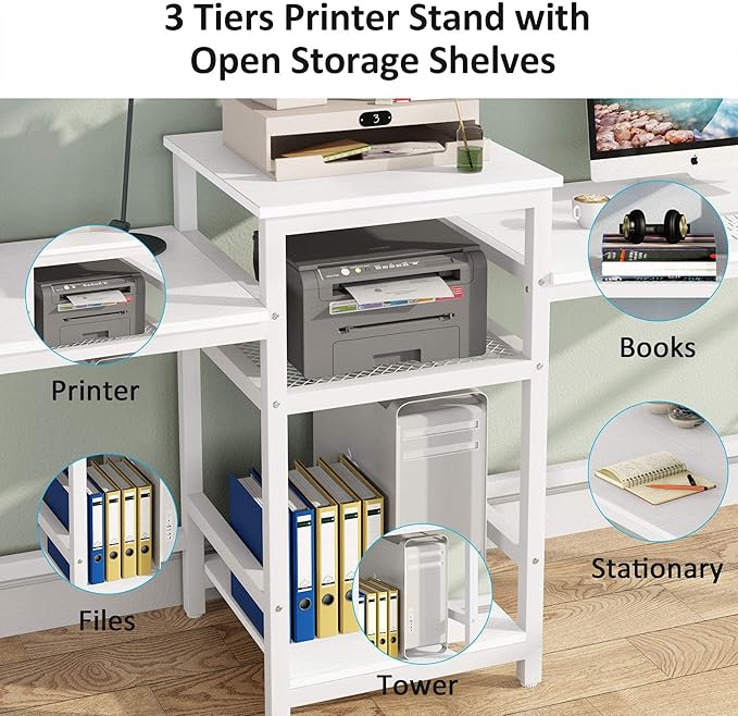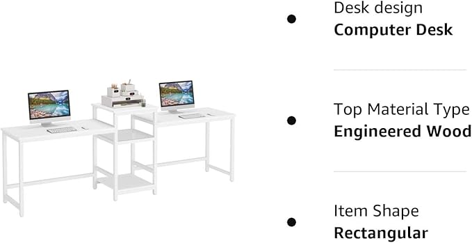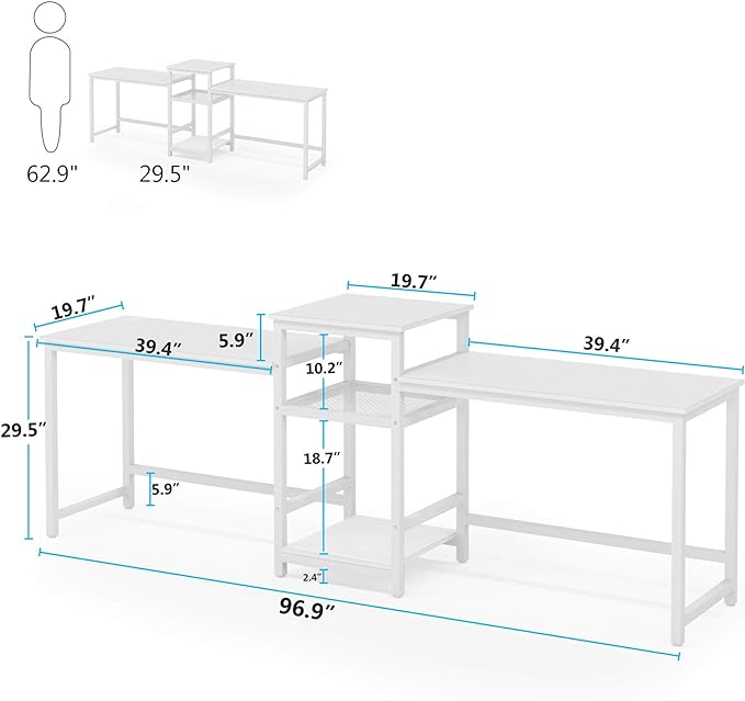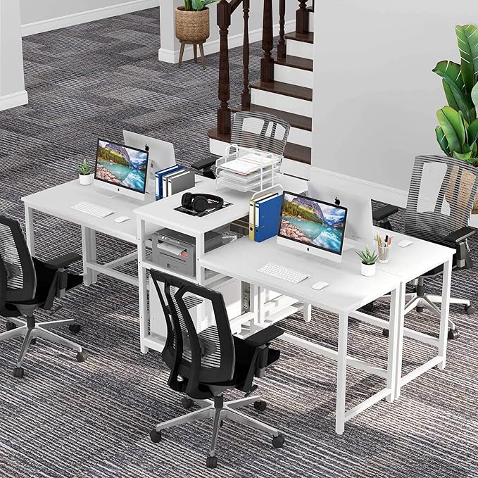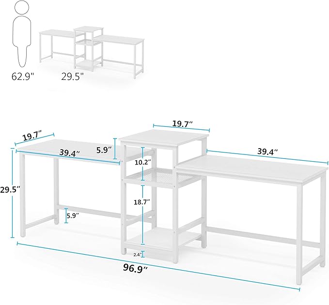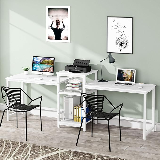 Tribesigns 96.9" Double Computer Desk with Printer Shelf, Extra Long Two Person Desk Workstation with Storage Shelves, Large Office Desk Study Writing Table for Home Office, White