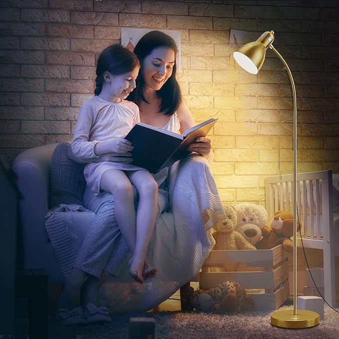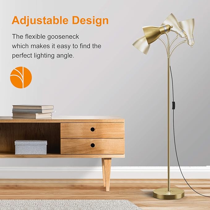LEPOWER Floor Lamp, Metal Standing Lamp with Adjustable Gooseneck, Heavy Metal Base, Reading Pole Lamp for Office, Golden Floor Lamps for Bedroom, Living Room