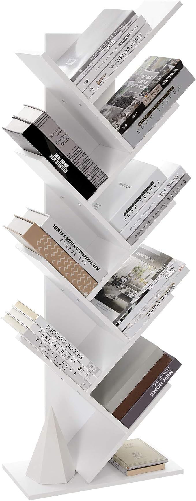 VASAGLE Tree Bookshelf, 9-Tier Bookcase, Large Bookshelf, Space-Saving Corner Shelf, Book Tree, Holds Books, CDs, Games, for Bedroom, Living Room, Home Office, Cloud White ULBC11WTV1