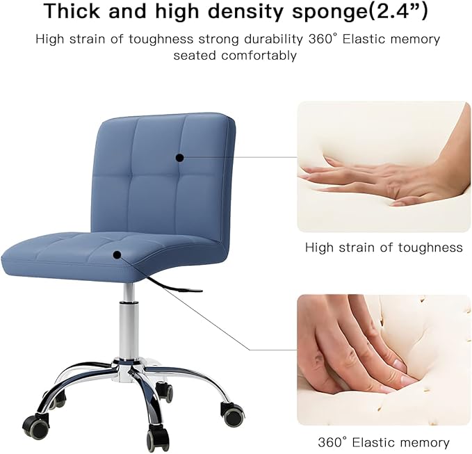 360° Office Desk Chair,PU Adjustable Rolling Task Chair with Backrest for Barber,Office,Home, Computer,360° Swivel,Armless (blue)