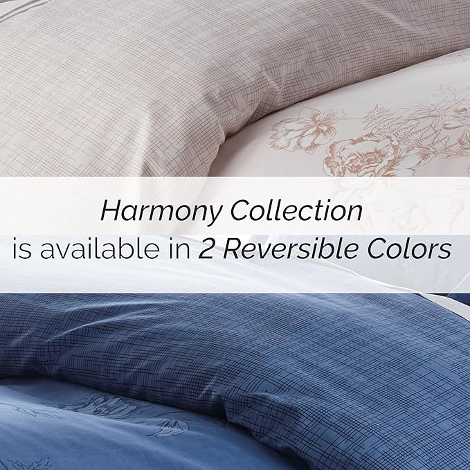 Southshore Fine Living, Inc. Oversized King Comforter Bedding Set, Down Alternative Floral Comforter with Matching Shams, Reversible Print is 2 Colors in 1, Fits King/Cal King Beds, Taupe & White
