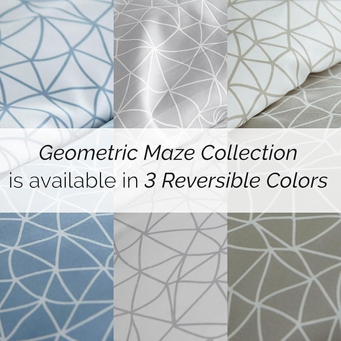 Southshore Fine Living, Inc. Full/Queen Comforter Set with 2 Pillow Shams, Reversible Geometric Print is 2 Colors in 1, Alternative Down Comforter Queen/Full, Cozy & Soft, Sky Blue & White