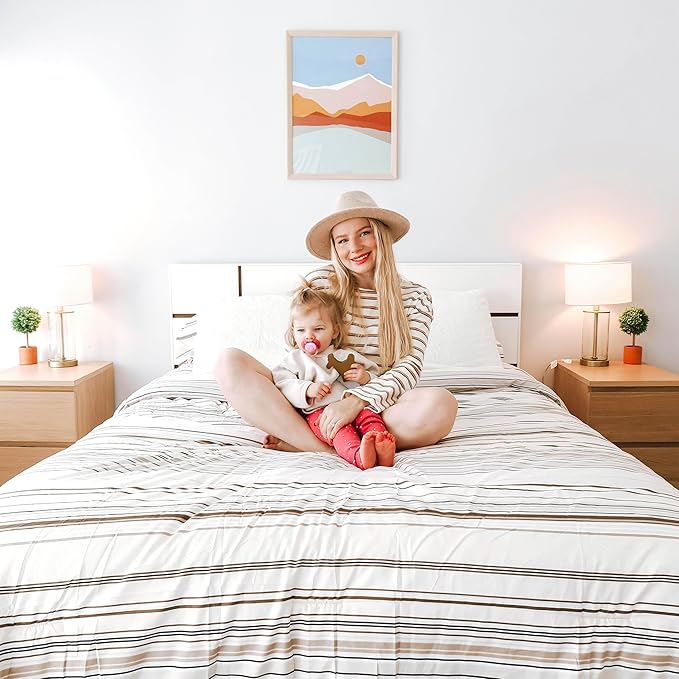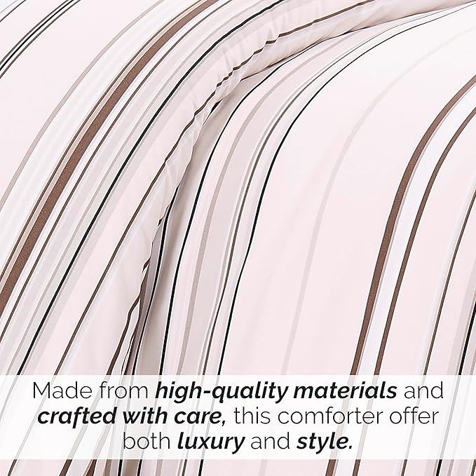 Southshore Fine Living, Inc. Twin Comforter Set, Down Alternative All-Season Striped Comforter with Matching Pillow Sham, Soft Coastal Bedspread for Twin or Twin XL Bed, Coastal Stripes Taupe