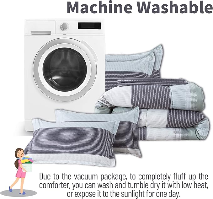 Andency Stripe Comforter Set King Size (104x90 Inch), 3 Pieces Mint Green Patchwork Striped Comforter, Soft Microfiber Down Alternative Comforter Bedding Set with Corner Loops